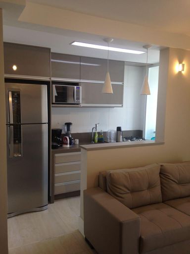 Apartamento de 2 Quartos com Suíte, Armários, Cozinha Planejada, Box Blindex, cortina de vidro, Split na sala, ar de janela no quarto e 1 Vaga de Garagem na Escritura.